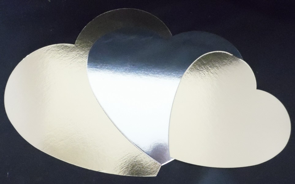 30 Herzen (je 10 Stück 15cm, 19cm und 23cm) aus beidseitig laminierter Pappe (Gold-Silber), Stärke ca. 0,6mm