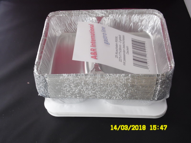 400 Aluschalen R808L (227x177x38mm, zweigeteilt) mit unbedruckten Deckeln